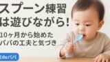 親がスプーンで食べるのを見せる、手で食べてみせるなどの「見本」も効果的です。